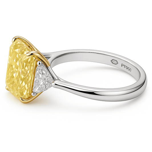 Cushion Solitaire Ring 3.42ct Fancy Intense Yellow VS1 Two Tone Lab-Grown
