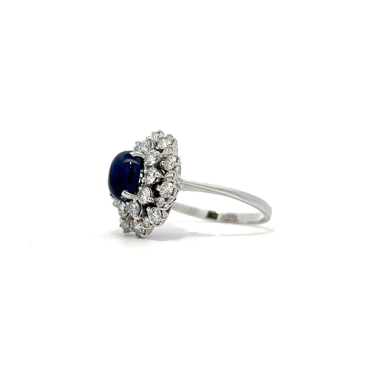 0.79ct Blue Sapphire Cabuchon cut Diamond ring