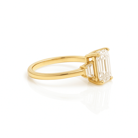 Emerald Trilogy Ring 3.11ct F VS1 18K Yellow Gold Lab-Grown