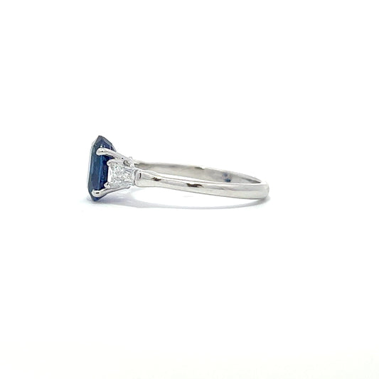 4.47ct Blue Sapphire Trilogy Engagement ring
