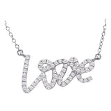 Romantic and effortlessly elegant, this diamond “Love” script pendant is a timeless expression of affection and style. Crafted in polished 18K white gold, the flowing script design is delicately adorned with brilliant diamonds, creating a graceful silhouette that captures both emotion and refinement.
