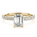 The Karina Emerald-Cut Single Row Diamond Engagement Ring in 14K White Gold, designed for an emerald-cut centre stone. The elongated, step-cut diamond is framed by a single row of accent diamonds along the band, creating a sleek, linear engagement ring with a quiet, sophisticated sparkle. Crafted in 14K white gold with SI1ÐSI2, GÐH diamonds, this setting enhances the clarity and depth of the emerald-cut without overpowering it. A refined option among engagement rings Antwerp for clients who love emerald-cut diamond rings in Antwerp with a modern, gallery-style profile.