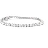 This 18K white gold tennis necklace features 25.86ctw of laboratory-grown round diamonds with F color and VS1 clarity.