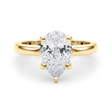 The Zoe Solitaire Diamond Engagement Ring in 18K White Gold, designed for a pear centre stone. A contemporary solitaire, the Zoe is a solitaire engagement ring that frames the pear shape with a polished, understated profile for a timeless bridal look. Designed to layer smoothly with a wedding band with a low, wearable profile. A modern choice for engagement rings Antwerp, crafted with a refined, premium finish.